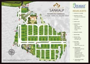 Riyasat Group’s landmark township, The Riyasat Sankalp is a well-planned Plotted township in Nadhal, Panvel, Navi Mumbai offering NA residential and commercial plots equipped with amenities like grand landscaped gardens, club house, swimming pool, Jain & Hindu temple, 24/7 secured environment, efficient infrastructure, and excellent connectivity.
